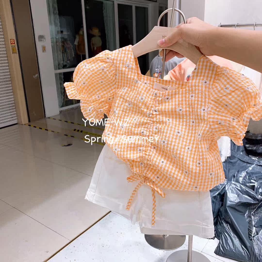 女童套装 夏小雏菊抽绳设计棉麻衬衫+白色短裤2件套中小童娃娃衫热门设计联盟服务商