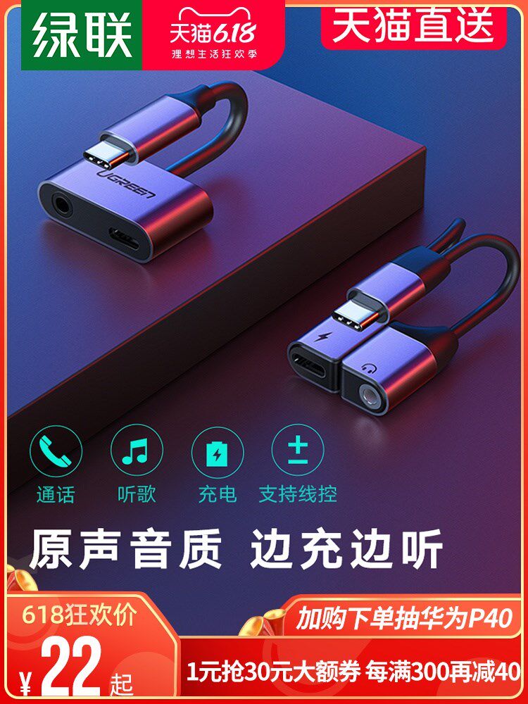 绿联typec充电耳机转接头线二合一转换器tpc安卓typc转3.5接口tap热门设计联盟服务商