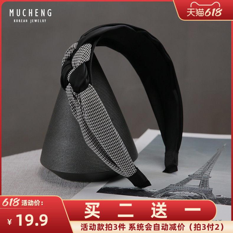 边结设计~韩国千鸟格质感缎面压发箍女发卡宽边简约百搭头箍韩版热门设计联盟服务商