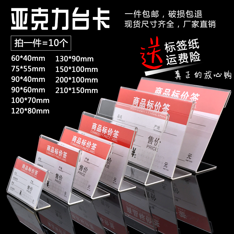 10个装 L型亚克力台卡桌牌 透明商品标价牌价格牌超市标签展示牌热门设计联盟服务商