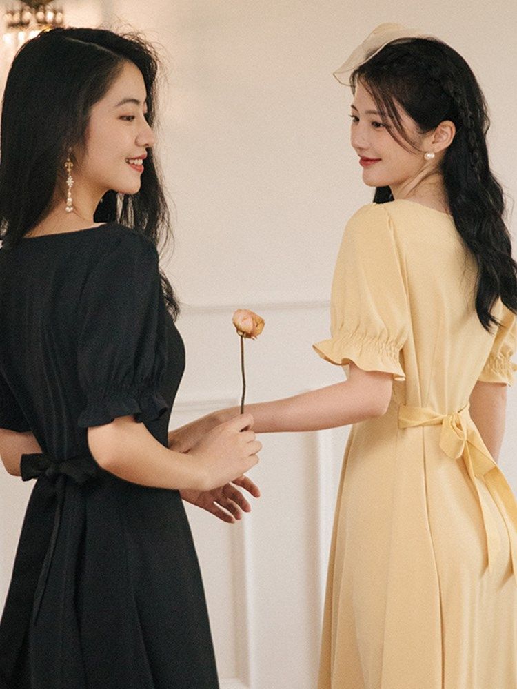 夏季法式复古赫本风连衣裙设计感小众2021年新款气质绑带收腰长裙热门设计联盟服务商