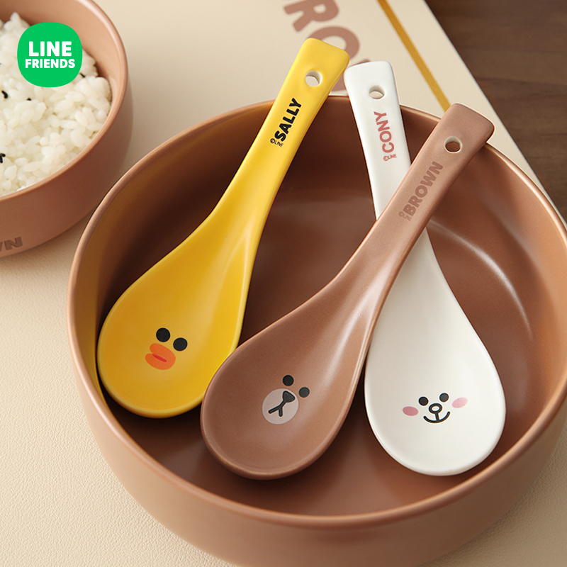 LINE FRIENDS卡通可爱创意长柄陶瓷小勺子家用喝汤大调羹吃饭套装热门设计联盟服务商