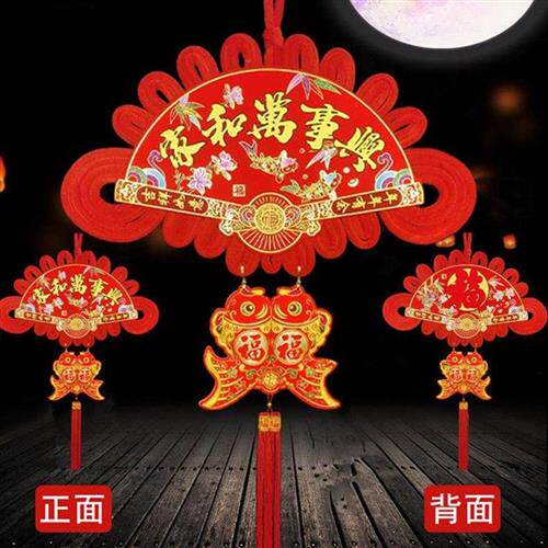新年挂饰套绳过新年新居中国x风中国结扇形挂件客厅影视墙新春超热门设计联盟服务商