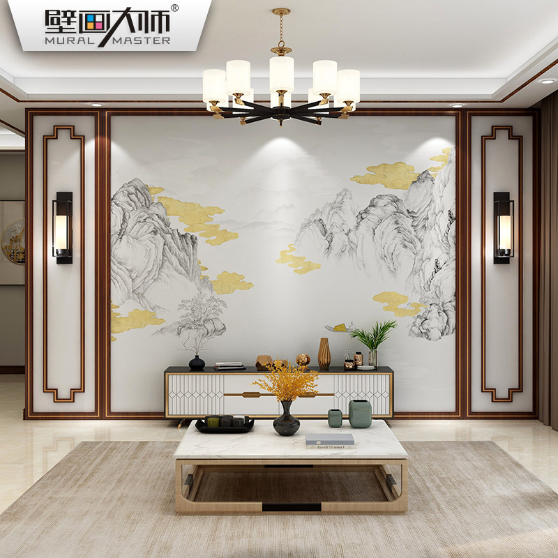 新中式金色山水壁纸现代简约轻奢电视背景墙纸客厅壁画影视墙壁布热门设计联盟服务商