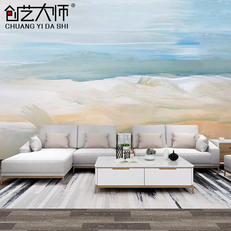 沙发艺术墙墙壁电视客厅沙滩抽象。壁画布油画影视蓝天D北欧背新热门设计联盟服务商