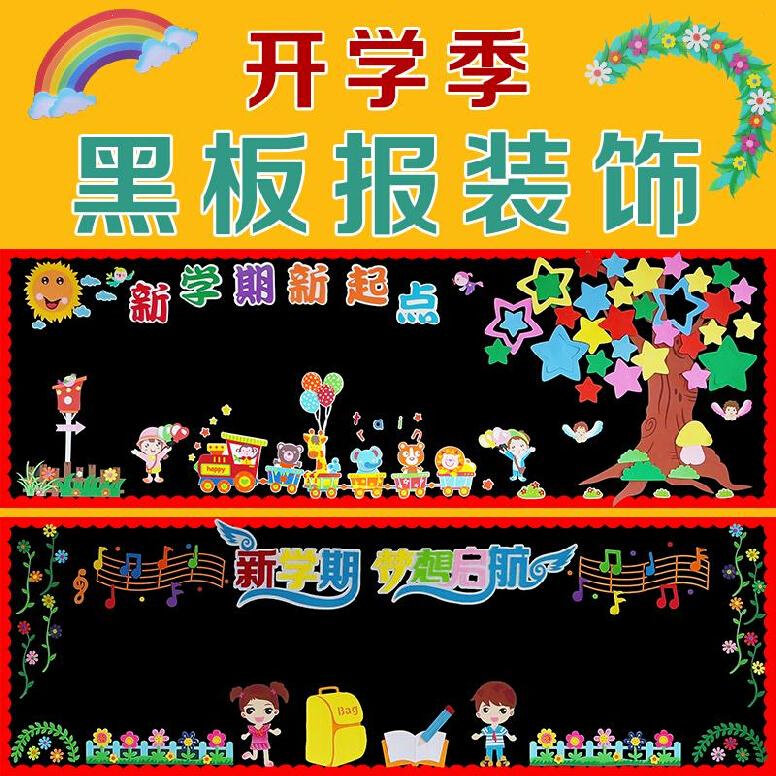 新学期黑板报补课班一年级主题文化墙三年级五年级素材装饰品布置热门设计联盟服务商