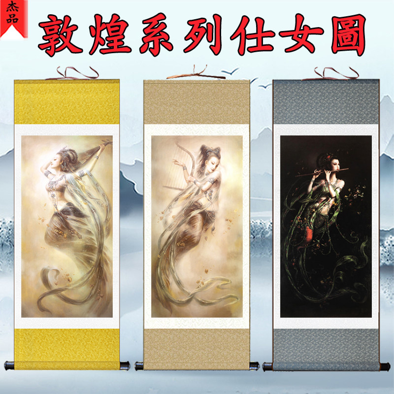 敦煌壁画飞天仕女图丝绸卷轴画客厅会所玄关人物油画美女装饰画热门设计联盟服务商