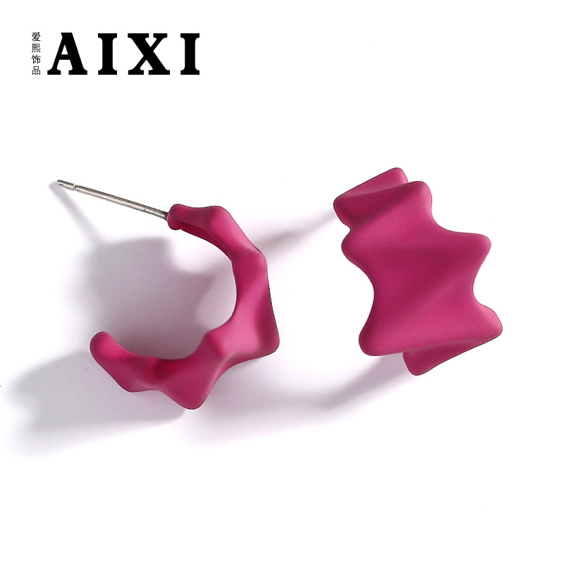 简约玫红色清新耳钉2021年新款潮法式设计感耳环气质百搭几何耳饰热门设计联盟服务商