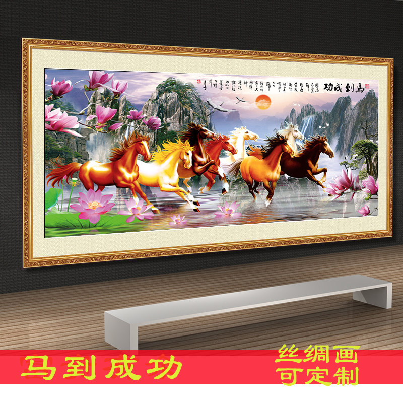 马到成功八骏图丝绸卷轴画无框八匹马横幅新款客厅装饰挂画定制画热门设计联盟服务商