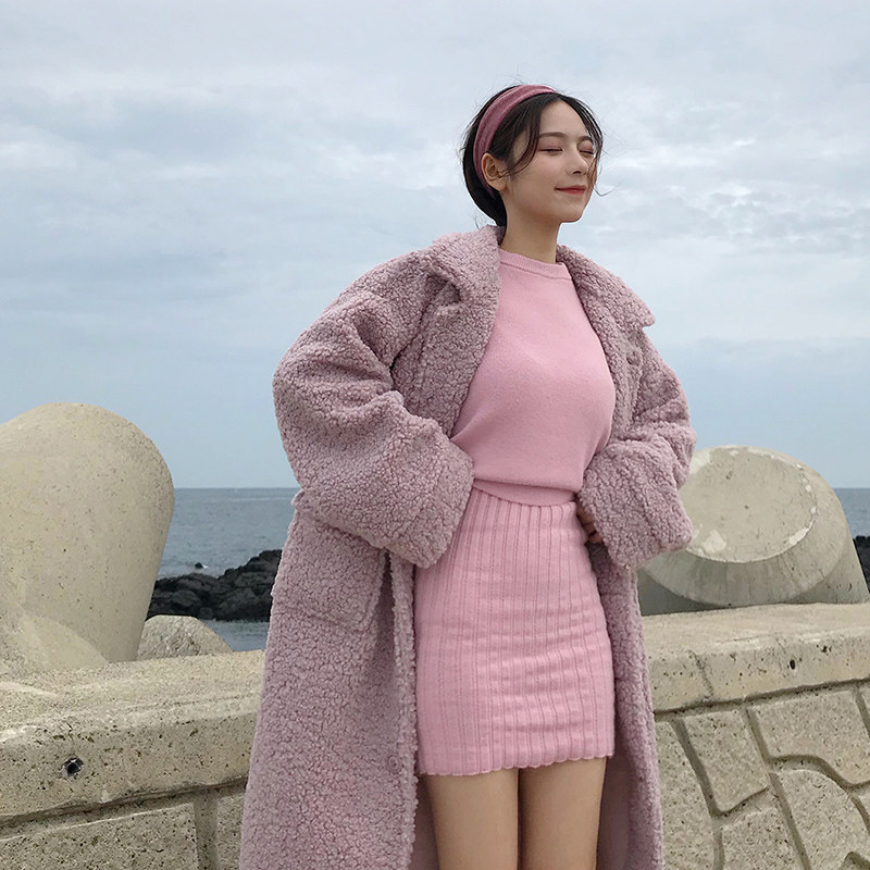 商品处理:安如yeah秋冬新款粉紫色泰迪毛外套女长款加厚保暖热门设计联盟服务商