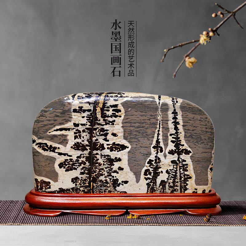 草花石天然水墨画国画石奇石天然玉石图案石画面石观赏石摆件装饰热门设计联盟服务商