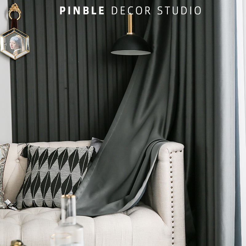北欧轻奢仿真丝棉光泽感INS工业风设计师风简约大气遮光窗帘定制热门设计联盟服务商