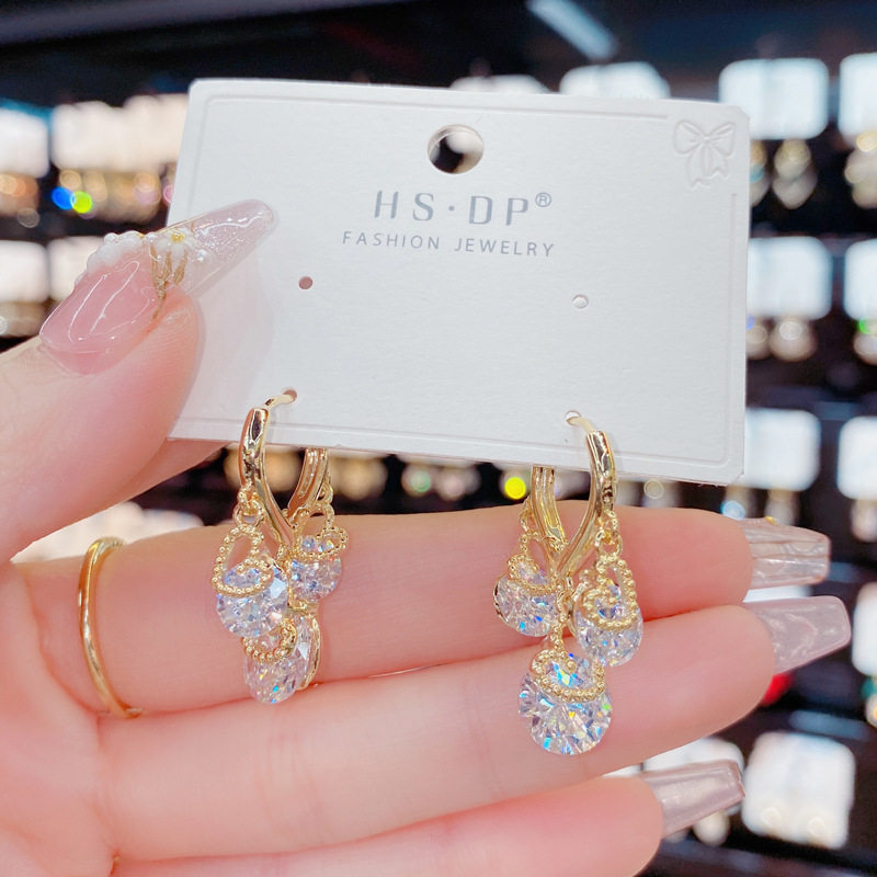2021秋冬新款时尚超闪爱心水钻流苏耳扣抖音网红同款耳环设计耳坠热门设计联盟服务商