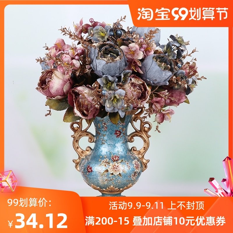 仿真花束欧式花瓶摆件牡丹插花假花朵客厅摆设干花艺装饰高端摆花热门设计联盟服务商