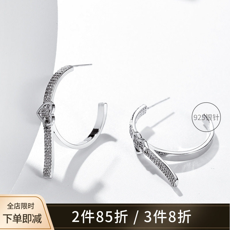 925银针个性夸张设计感大圈圈爱心耳环女 2021年新款潮法式耳饰品热门设计联盟服务商