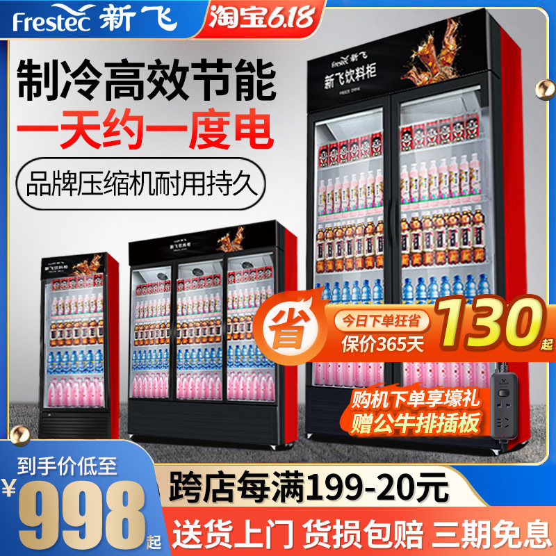 新飞展示柜冷藏柜饮料柜冰柜啤酒水商用双开立式保鲜柜超市冰箱热门设计联盟服务商